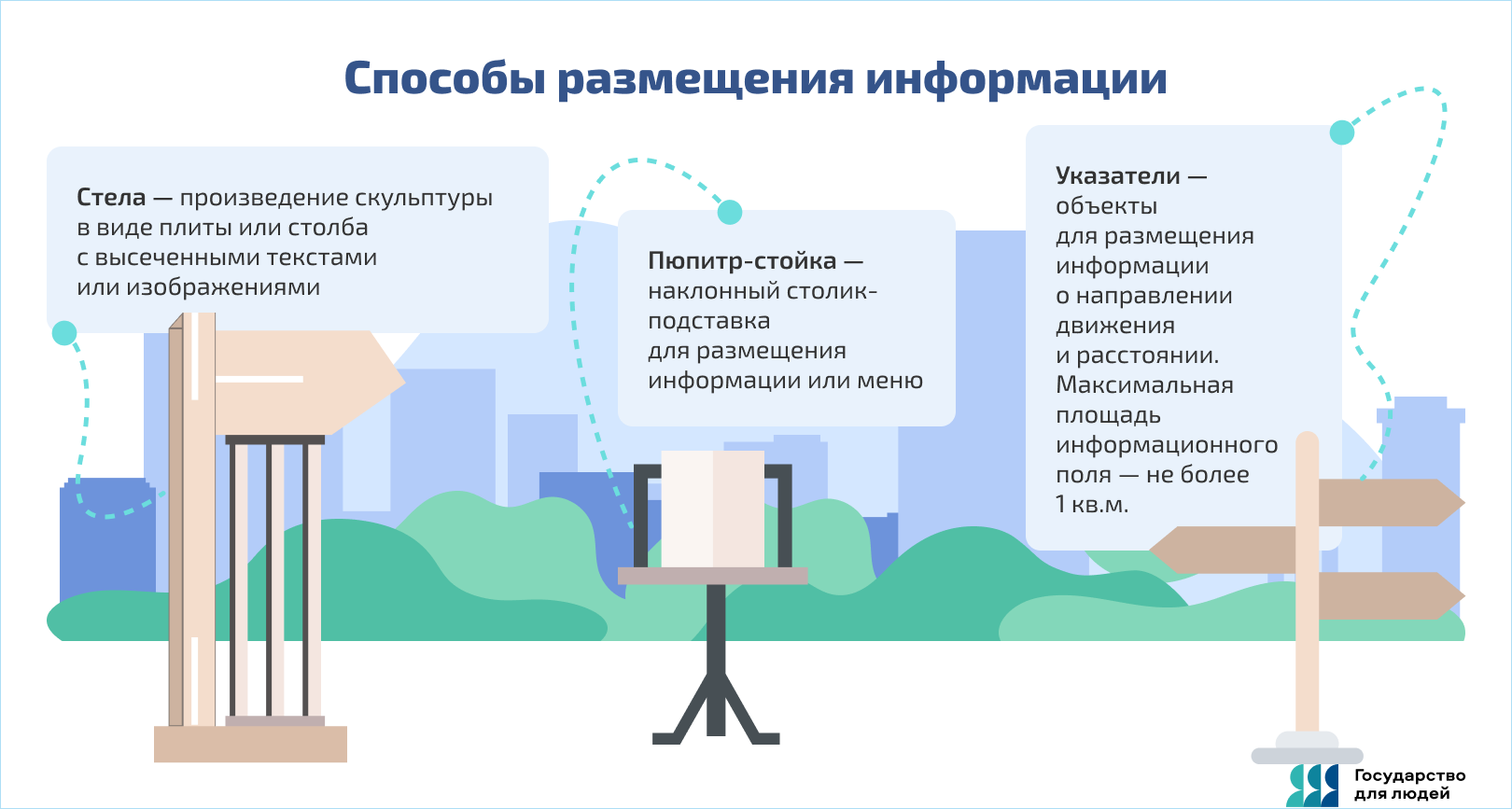 Указатели – объекты для размещения информации о направлении движения и расстоянии с максимальной площадью информационного поля не более 1 кв. м.