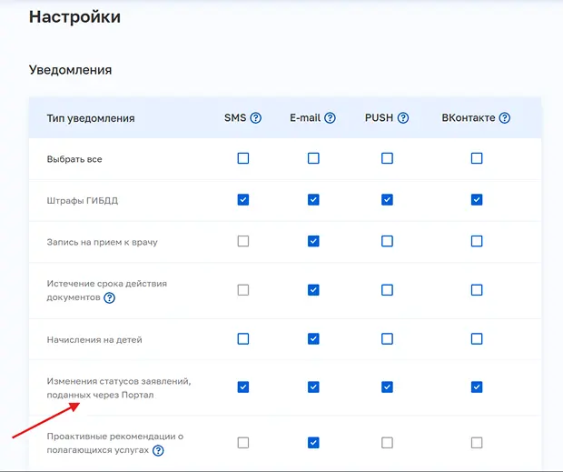 Чтобы не пропустить обновления статуса заявления, настройте получение уведомлений в настройках личного кабинета.