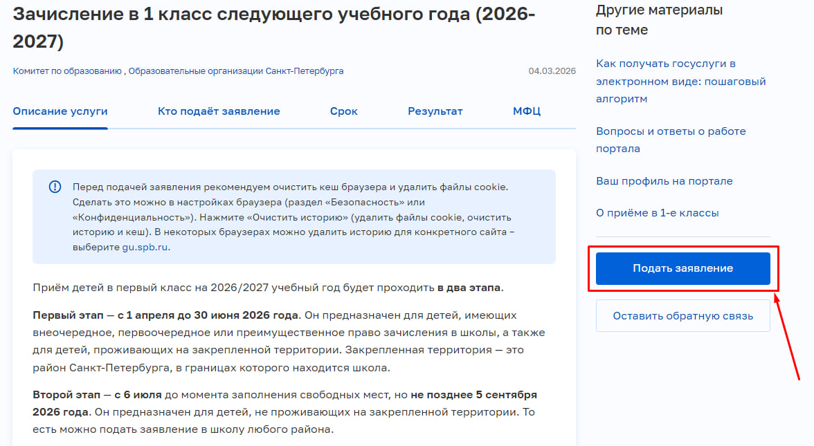 Запись в первые классы проходит в два этапа.