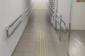 Центр оборудован дополнительным входом в помещение сектора для МНГ. Пандусом оборудованы центральный вход и дополнительный вход.