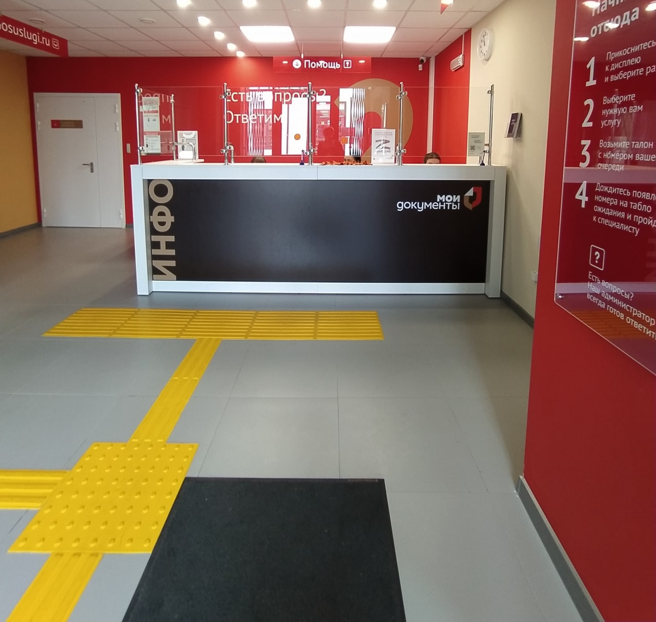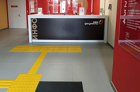 По пути движения внутри здания для слабовидящих размещена тактильная плитка.