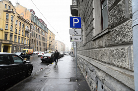 На территории, прилегающей к зданию, выделены парковочные места для автотранспорта инвалидов, обозначенные знаком парковки автомобилей.