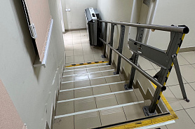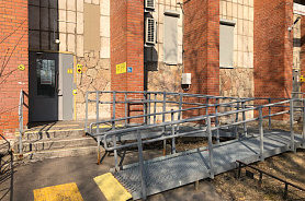 Путь движения на территории, прилегающей к зданию, имеет ровную шероховатую поверхность. Внутри сектора имеется лестница, состоящая из 7 ступеней, и оборудована поручнями. Подъемник расположен с левой стороны от входной группы. Имеется отдельный вход.