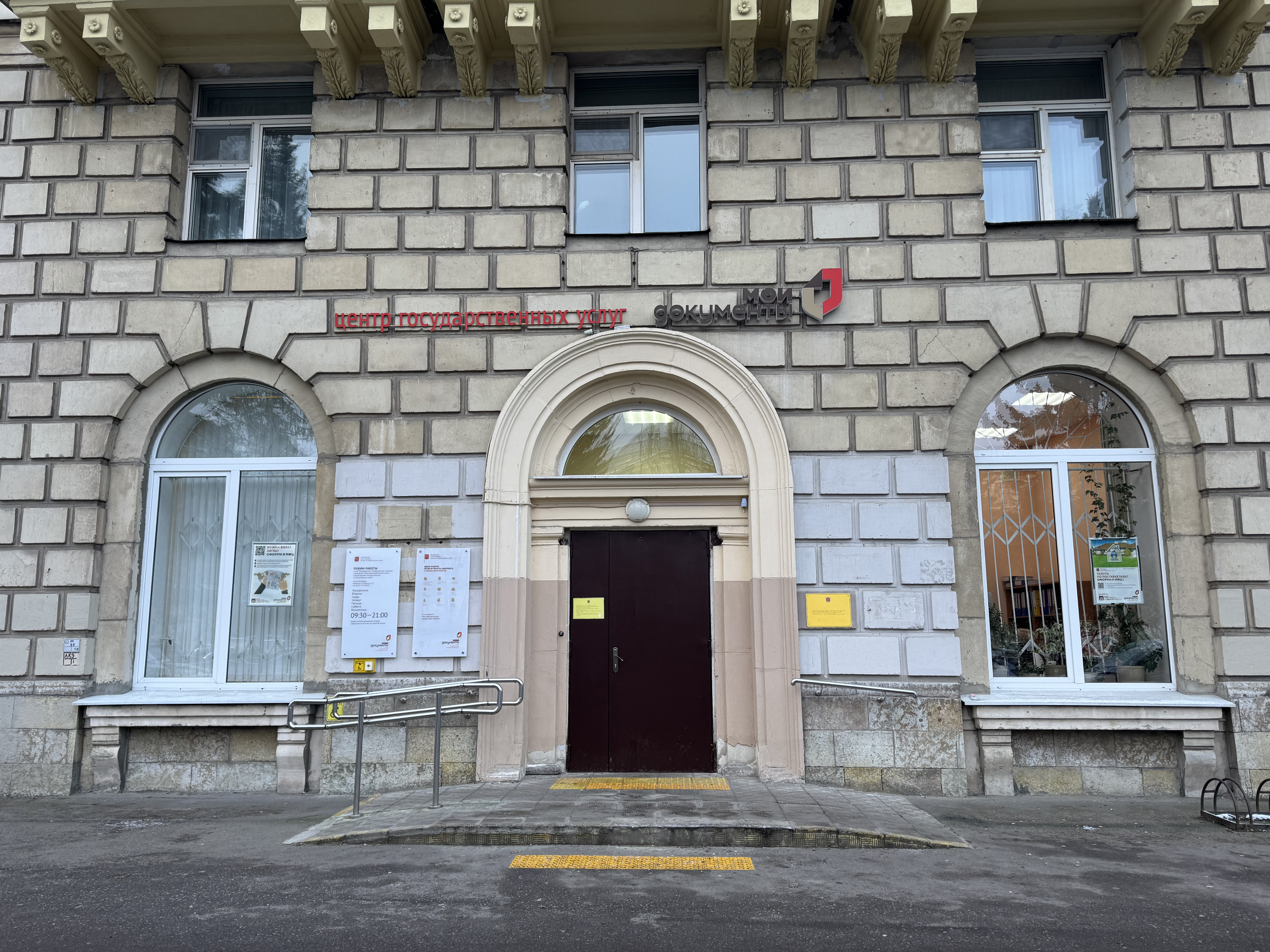 От остановки «улица Братьев Радченко» (нечетная сторона) до МФЦ расстояние составляет приблизительно 258 метров. После выхода из общественного транспорта необходимо повернуть направо и пройти 47 метров до пешеходного перехода, оборудованного светофором со звуковым сигналом.