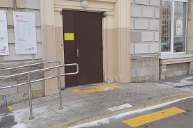 По пути движения для слабовидящих у входной группы главного входа нанесены контрастные полосы у перепадов высот.