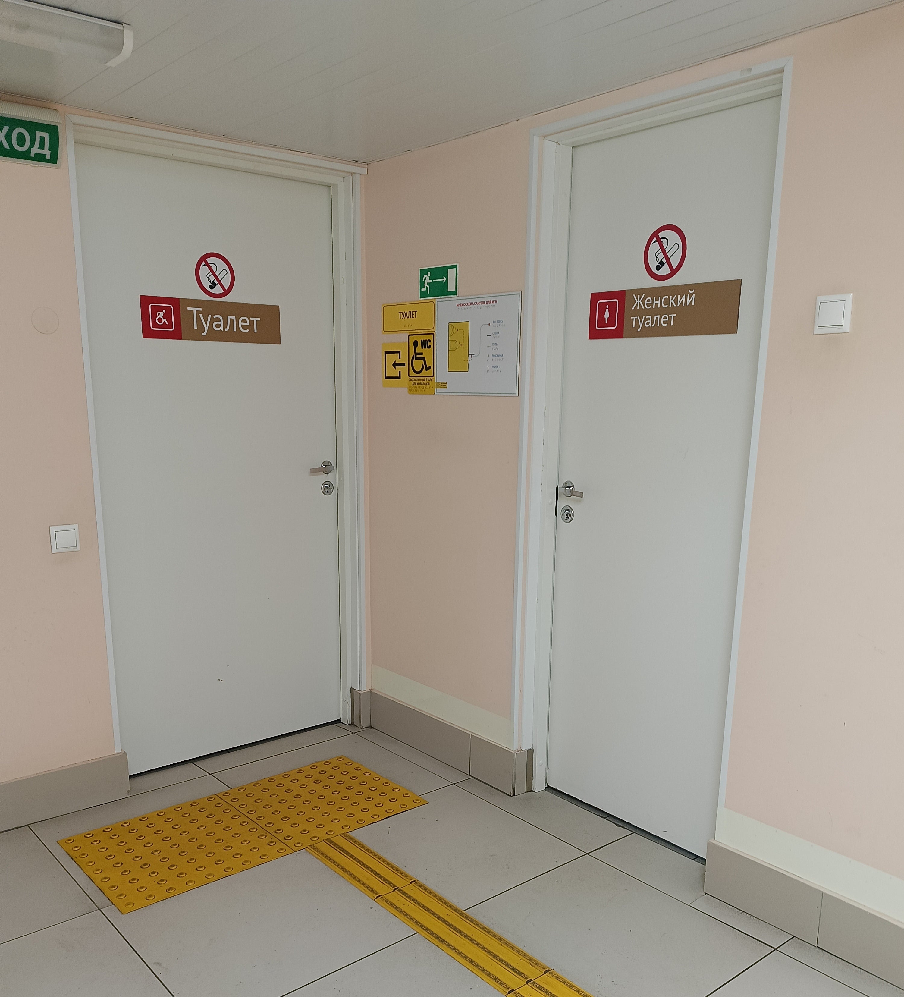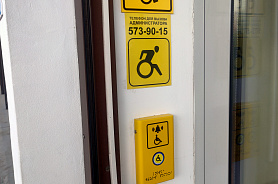 Кнопка вызова персонала для оказания помощи инвалидам всех категорий расположена с левой стороны от двери главного входа на высоте 1 метр.