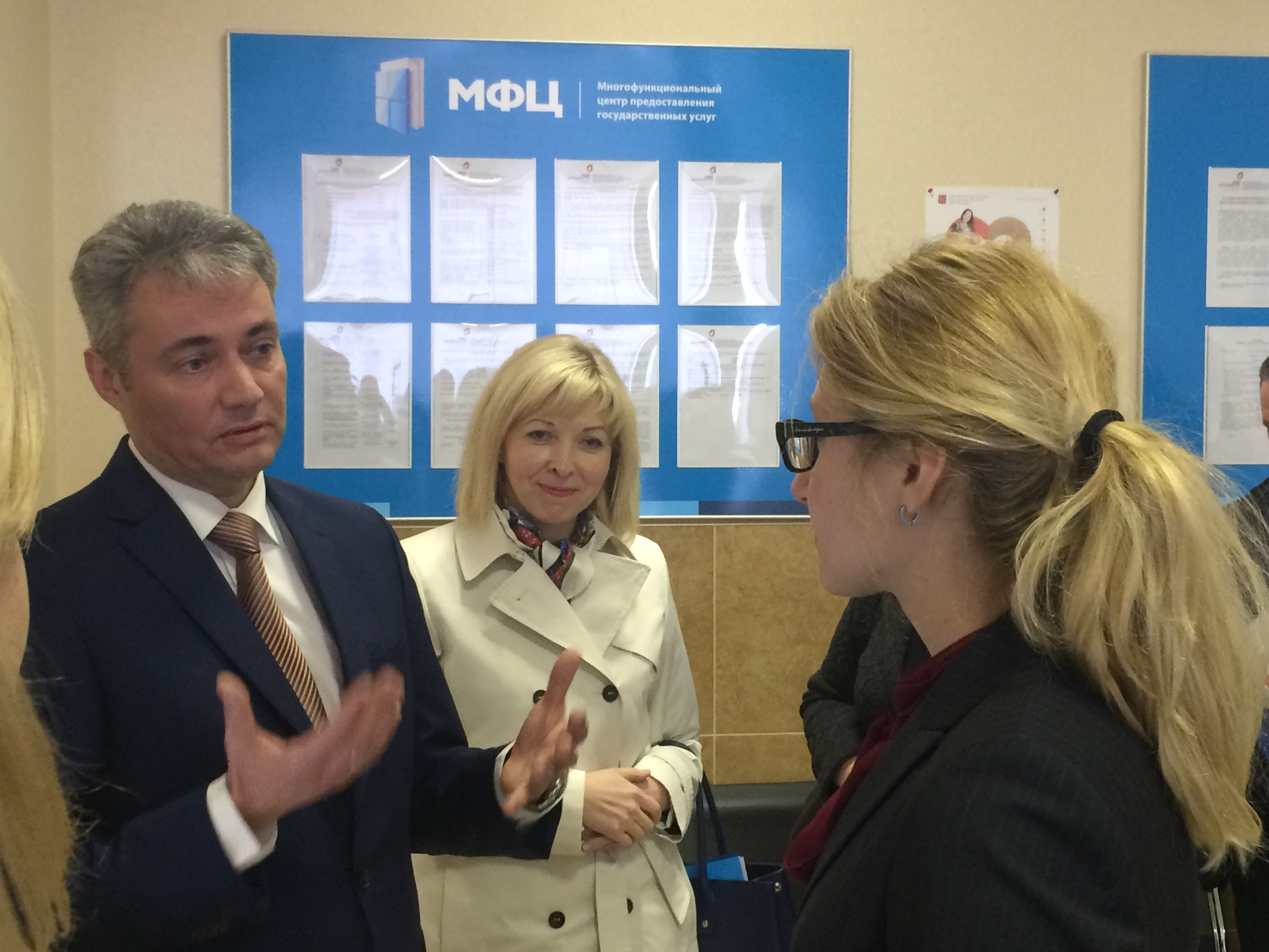 13 апреля экспертов Всемирного Банка познакомили с режимом работы "одного окна" для застройщиков. Встреча проходила в рамках ряда мероприятий, направленных на оценку Всемирным Банком одного из показателей рейтинга Doing Business - "Выдача разрешения на строительство". Выводы экспертов войдут в оценку рейтинга благоприятности условий для ведения бизнеса в Российской Федерации. В качестве площадки был выбран один из 58 центров государственных и муниципальных услуг "Мои Документы" Санкт-Петербурга на Новоизмайловском пр., д.34 корп. 2.